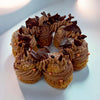 Namélaka chocolat noir Macaé à la fève de Tonka, ganache montée chocolat noir Macaé, pâte à choux et craquelin.